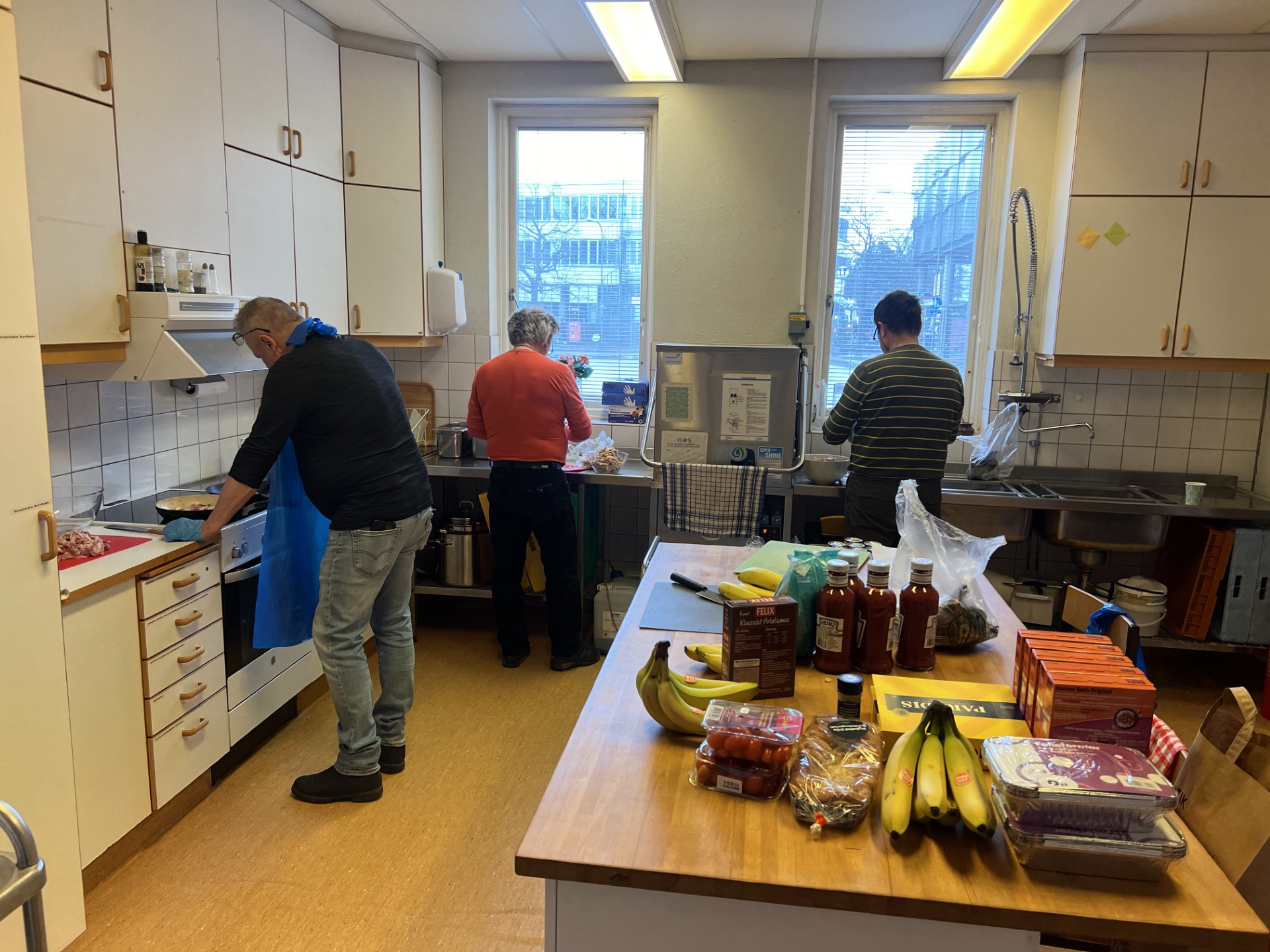 Mat och prat är en träff för äldre herrar som inte riktigt får till det där med matlagning på egen hand. Kanske finns inte ekonomin till att handla varor för att laga sin mat eller så fattas kunskapen om matlagning. Det kan också vara så att det känns svårt att äta ensam hemma, så att laga mat tillsammans med andra i liknande situation och därefter äta en gemensam måltid vid vackert dukat bord är för våra deltagare väldigt värdefullt. Att dessutom få ta några matlådor av det man lagat tillsammans med sig hem vid avslutningen är väldigt betydelsefullt.
